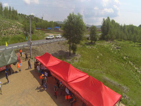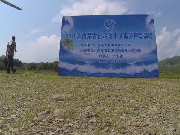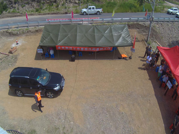 雨能牌无人飞机测流设备从空中拍摄应急演练现场照片: