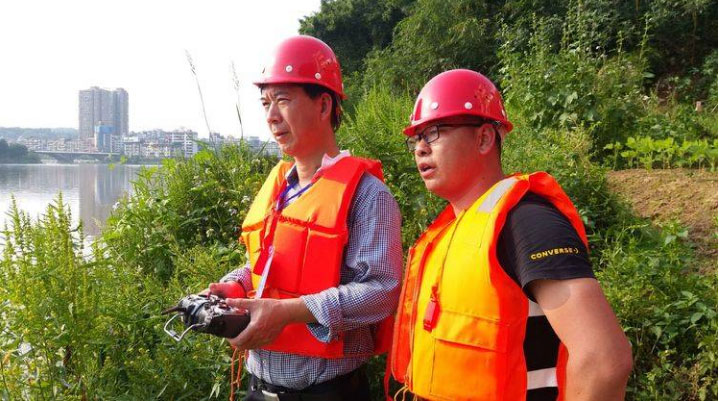 南平水文局局长朱孝务亲自操作雨能牌遥控船...